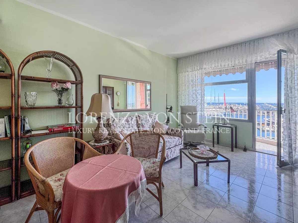 The property stands out for its panoramic view of the Port of Monaco, which can be fully enjoyed from both the living area and the balcony.
