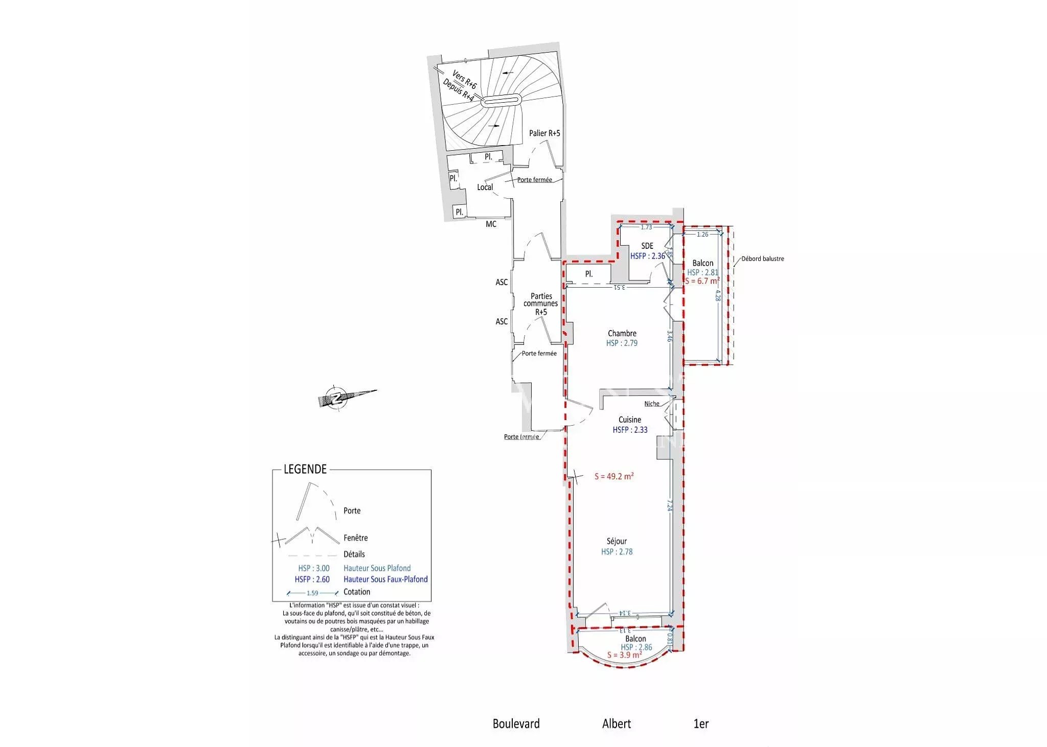 The apartment also features one bedroom, one bathroom, and two balconies.