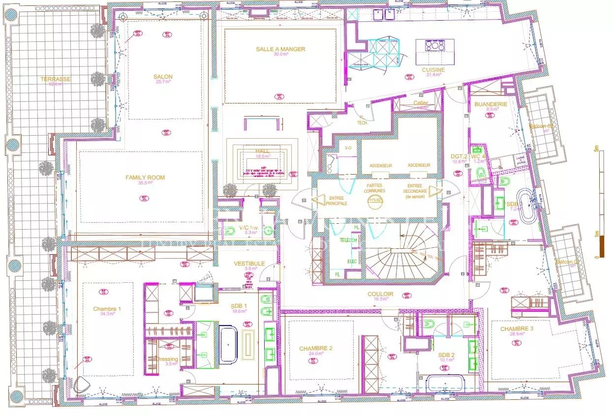 The 430m2 are home to 3 generous bedrooms with en-suite bathrooms and dressing rooms, including a fantastic master bedroom with a dressing room for her and him, opening onto the terrace offering the same breath-taking view.